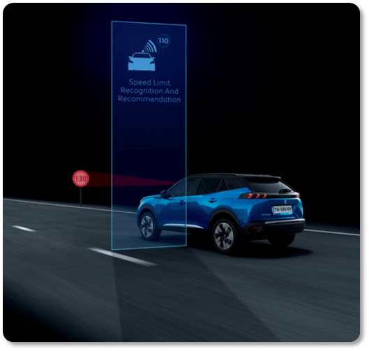 • Nhờ vào camera trên kính chắn gió, hệ thống sẽ nhận diện được biển giới hạn tốc độ, và đưa ra cảnh báo